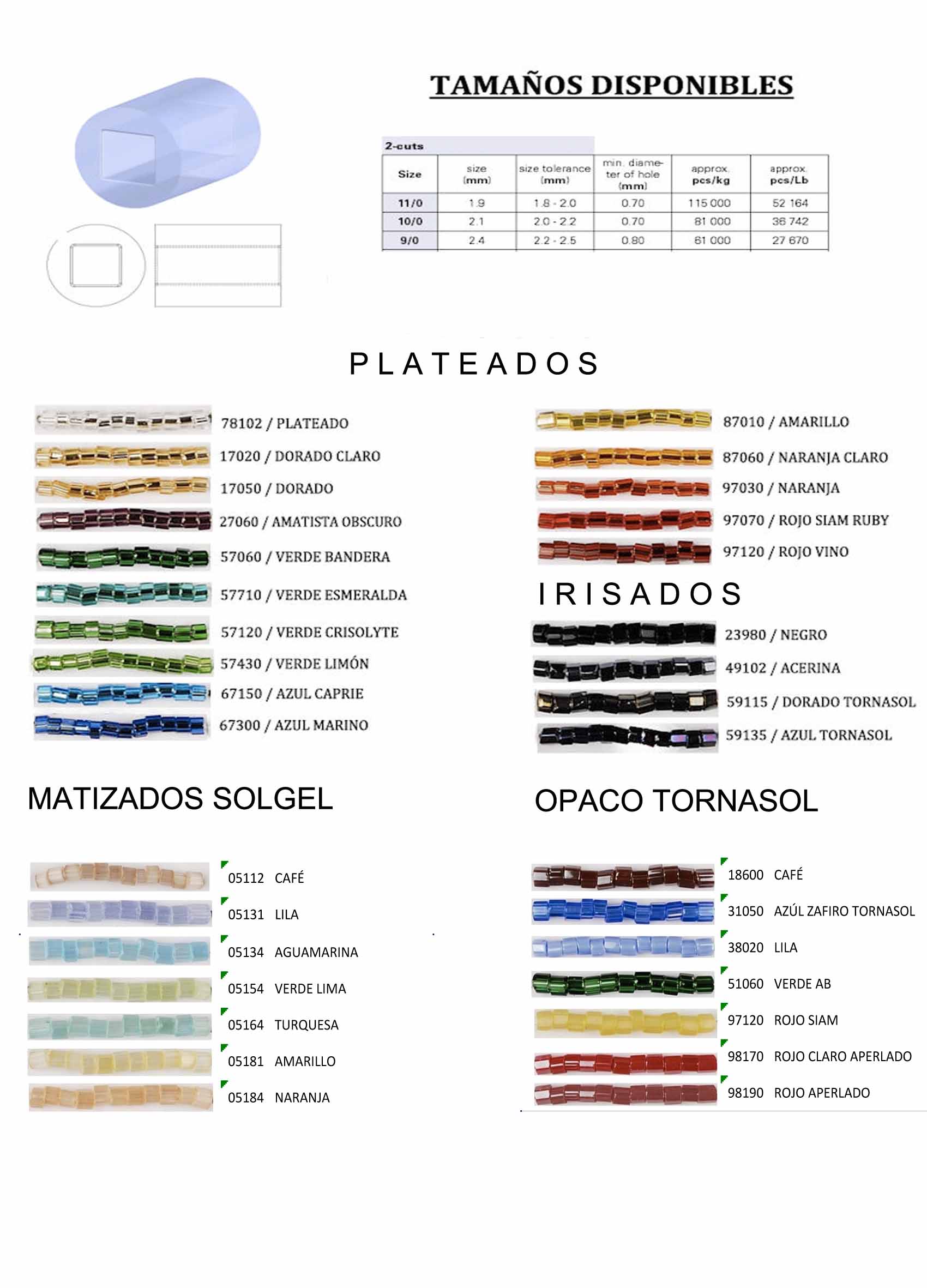 Canutillo corto es cuenta de vidrio uniforme, lisa y/o torcida desde su origen con el fin de dar un acabado y brillo extra a sus prendas. Utilizado principalmente en la industria del vestido es un productos sumamente fino y 100% lavable, característica única en este tipo de elementos, este producto es muy popular debido a la amplitud de sus agujeros, así como sus formas y colores disponibles. El conocimiento y la experiencia combinado con el surtido de colores y tamaños permite desarrollar grandes proyectos.