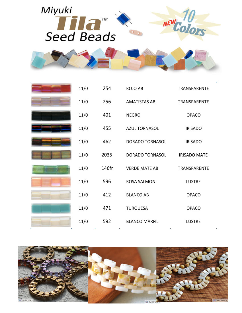 Nuestra empresa se enorgullece en ofrecer por primera vez y de manera directa "TILA" cuenta japonesa de la marca Miyuki con apenas 5x5mm. Esta cuenta plana y de doble agujeros es ideal para aquellos trabajos finos y sencillos donde el toque elegante aparece de sus manos.